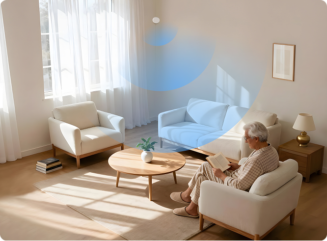 Discreet sensors monitor movement 24 hours. No cameras. No microphones.